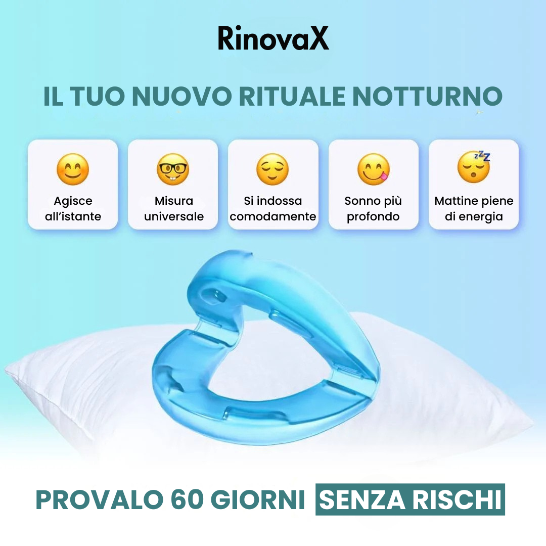 RinovaX™ är en patenterad apparat utformad för att eliminera snarkning från första natten . Stoppa den bara i munnen innan du somnar ... och när du vaknar känner du dig utvilad, full av energi och bredvid en glad partner .