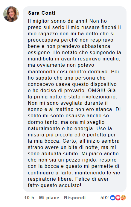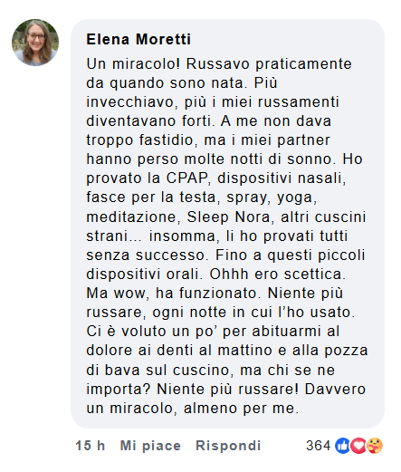 Du är inte ensam: 25 miljoner italienare lider av snarkning eller delar säng med någon som snarkar. Efter att utan framgång ha provat näsremsor, speciella kuddar och ovanliga positioner upptäckte jag äntligen en revolutionerande apparat.