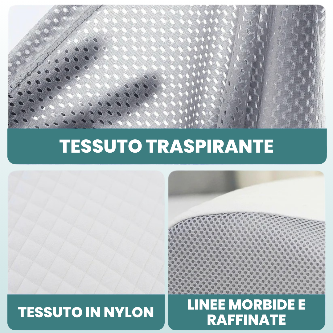 Il cuscino ortopedico RinovaX™ è stato progettato per offrire il massimo comfort e supporto durante il sonno, alleviando efficacemente i dolori cervicali e muscolari.