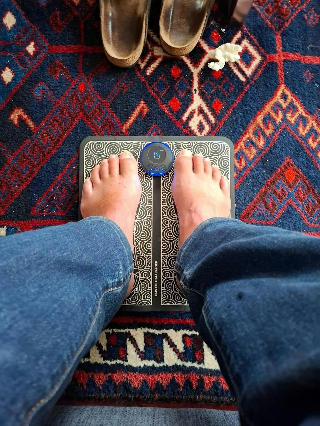 - Placera fötterna på mattan
