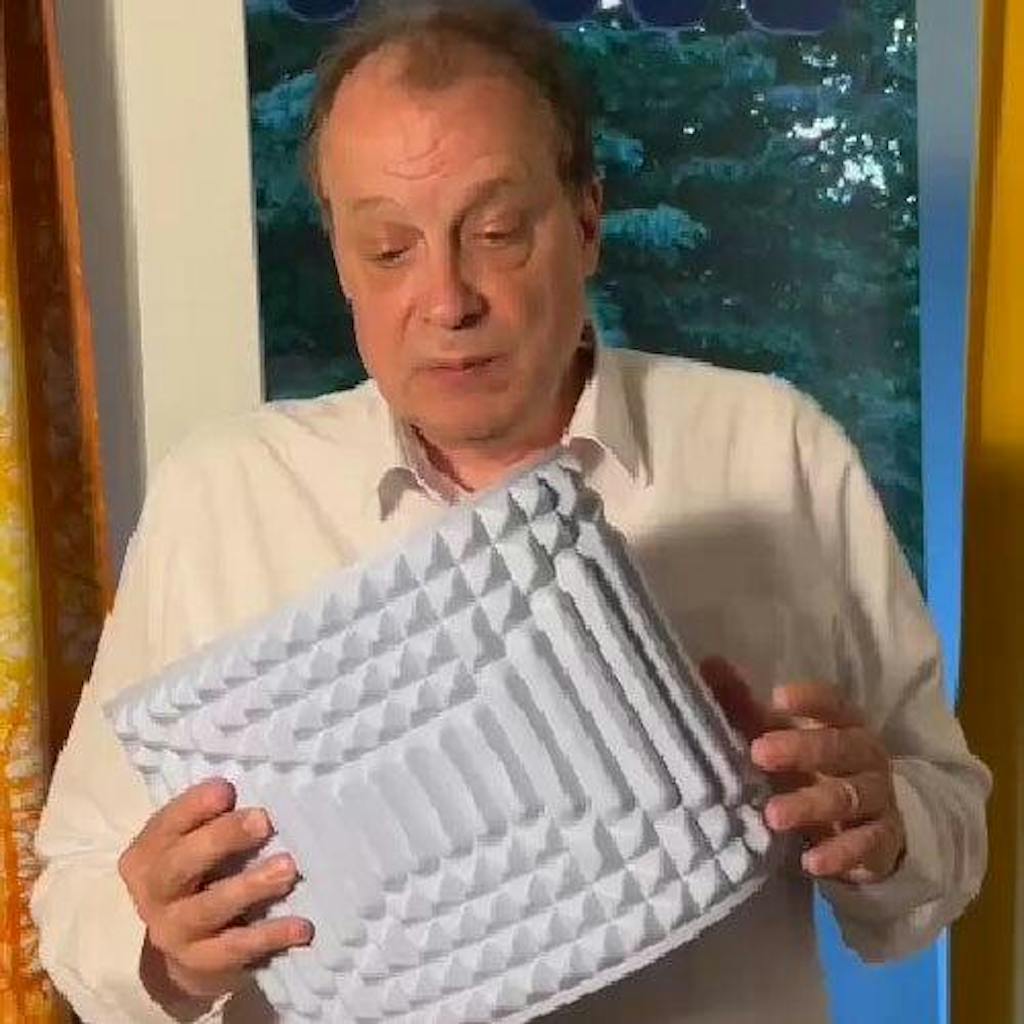 - Placera stativet på golvet (eller sängen), med det smala hörnet mot dig.